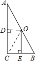 解答 解:如图,CA、CB的中点分别为D、E,CA、CB的垂直平分线OD、OE相交于点O,且点O落在AB边上,连接CO,∵OD是AC的垂直平分线,∴OC=OA,同理OC=OB,∴OA=OB=OC,∴A、B、C都落在以O为圆心,以AB为直径的圆周上,∴C是直角.故选D.