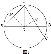 ,作OM⊥AB,ON⊥AC;利用余弦函数,可求出∠OAM=45°,∠OAN=30°;AC的位置情况有两种,如图所示;故∠BAC的度数为45°+30°或45°-30°.问题可求.