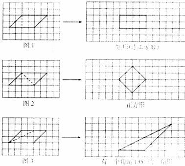 ·Ö±ðÔÚͼ1¡¢Í¼2¡¢Í¼3ÖУ¬¾¹ýƽÐÐËıßÐÎֽƬµÄÈÎÒâÒ»¸ö¶¥µã»Ò»Ìõ²Ã¼ôÏߣ¬Ñش˲üôÏß½«Æ½ÐÐËıßÐÎֽƬ²Ã³ÉÁ½²¿·Ö£¬²¢°ÑÕâÁ½²¿·ÖÖØÐÂÆ´³É·ûºÏÏÂÁÐÒªÇóµÄ¼¸ºÎͼÐΣ®