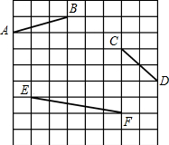 如图,将网格中的三条线段AB、CD、EF沿网格线(水平和铅直方向)平移,使它们首尾相接构成三角形,至少需要移动