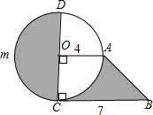 分析:求得S梯形OABC,S扇形OAC,以及S半圆OCmD,根据S阴影=S梯形OABC+S半圆OCmD-S扇形OAC求解.