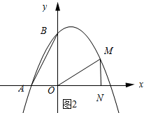 (2)设点M的坐标为(a,-a2+a+2),由相似三角形的判定定理可知当$\frac{AO}{OB}=\frac{ON}{MN}$或$\frac{AO}{OB}=\frac{MN}{ON}$时以M、O、N为顶点的三角形△AOB相似,然后将AO=1,OB=2,ON=a,MN=-a2+a+2代入求解即可.