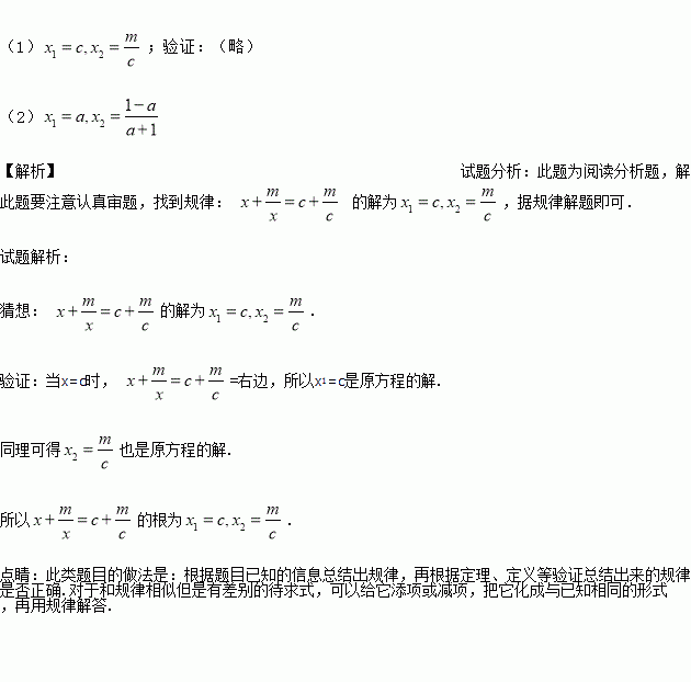 (m¡Ù0)ÓëËüµÄ¹ØÏµ,²ÂÏëËüµÄ½âÊÇʲô£¿²¢ÀûÓá°·½³ÌµÄ½â¡±µÄ¸ÅÄî½øÐÐÑéÖ¤.