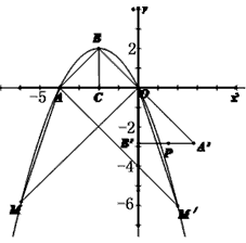 | 解:(1)由A(-4,0)、B(-2,2)在抛物线 ∴该函数解析式为: (2)过点B作BC垂直于轴,垂足是点C, 易知:线段CO、CA、CB的长度均为2, ∴△ABC和△OBC为全等的等腰直角三角形, ∴AB=OB 且∠ABO=∠ABC+∠OBC=90°, ∴△OAB是等腰直角三角形; (3)如图,将△OAB绕点O按逆时针方向旋转135°,得到△OA′B′其中点B′正好落在轴上且B′A′∥轴, 又∵OB′和A′B′的长度为 ∴点P不在此抛物线上; (4)存在。 过点O,作OM∥AB交抛物线于点M,易求出直线OM的解析式为:y=x, 联立抛物线解析式得: 显然,点M(-6,-6)关于对称轴x=-2的对称点M′(2,-6)也满足要求,故满足条件的点M共有两个,坐标分别为(-6,-6)和(2,-6), ∴S△BOM=S△ABO+S△AOM= |