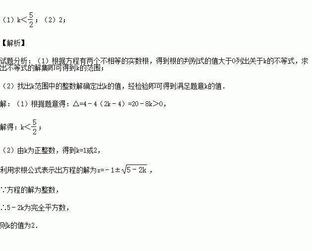 (2)若k为正整数,且该方程的根都是整数,求k的值.