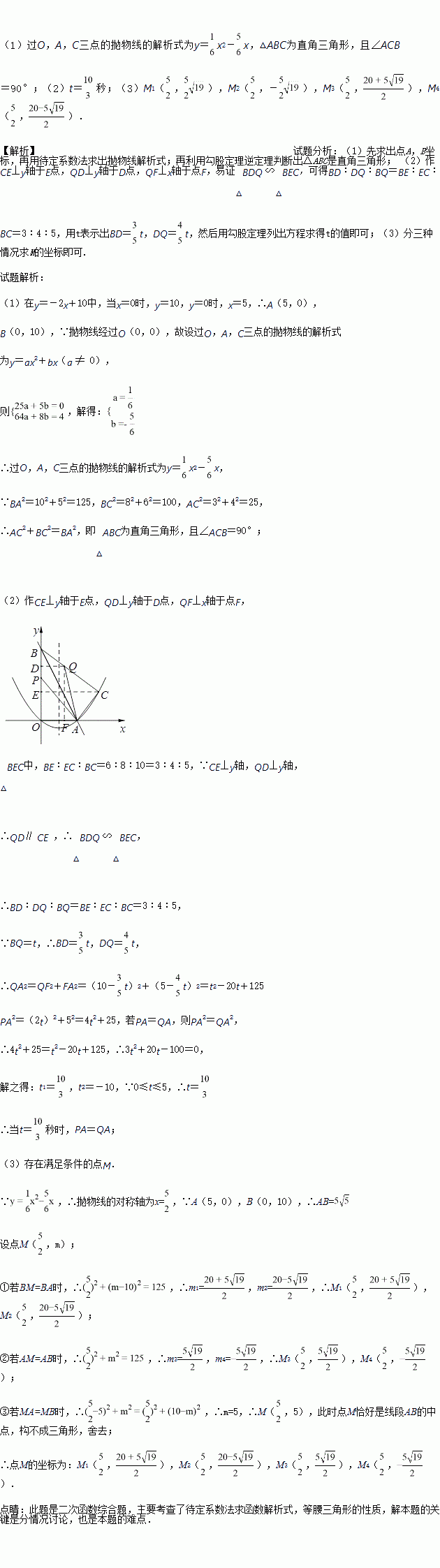 (1)求过O,A,C三点的抛物线的解析式,并判断△ABC的形状;