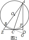 连接CF、BC,BC的延长线交AD的延长线交于G,如图2,
