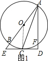 分析:(1)连接OC,如图1,根据切线的性质得OC⊥DE,而AD⊥EC,则OC∥AD,理由平行线的性质得∠OCA=∠DAC,加上∠OCA=∠OAC,所以∠OAC=∠DAC;