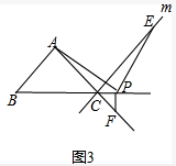(3)结论:CE-CF=AC,由图象可知AF-CF=AC,要证明CE-CF=AC.只要证明CE=AF即可.