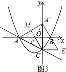 £¨3£©£©¢ÙÈçͼ3Ëùʾ£ºÑÓ³¤CF½ÇA¡äAÓëµãM£®ÔÚ¡÷ACOÖУ¬Óɹ´¹É¶¨ÀíÇóµÃ£ºAC=$\sqrt{O{A}^{2}+O{C}^{2}}$=2$\sqrt{3}$£®´Ó¶øµÃµ½µãA¡äµÄ×ø±êΪ£¨0£¬$\sqrt{3}$£©£¬È»ºóÓÉÖеã×ø±ê¹«Ê½¿ÉÇóµÃµãMµÄ×ø±êΪ£¨$-\frac{3}{2}$£¬$\frac{\sqrt{3}}{2}$£©£¬ÉèÖ±ÏßFCµÄ½âÎöʽΪy=kx-$\sqrt{3}$£¬½«µãMµÄ×ø±ê´úÈë¿ÉÇóµÃÖ±ÏßFCµÄ½âÎöʽΪy=-$\sqrt{3}x-\sqrt{3}$£¬Áîy=0¿É½âµÃµãFµÄ×ø±êΪ£¨-1£¬0£©£»