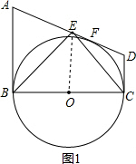 解答 解:设AD和半圆⊙O相切的切点为F,
