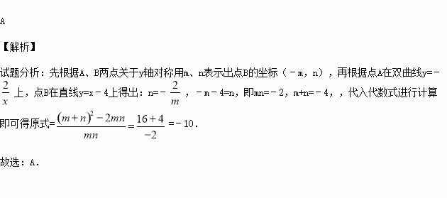 上,点B在直线y=x﹣4上,且A,B两点关于y轴对称.设点A的坐标为(m,n),则