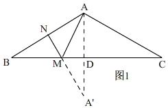作A关于BC的对称点A',作A'N⊥AB于点N,交BC于点M,则此时AM+MN的最小值,且AM+MN=A'N,