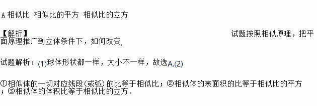 (2)请归纳出相似体的三个主要性质:①相似体的一切对应线段(或弧)的比等于__________;②相似体的表面积的比等于__________;③相似体的体积比等于__________.