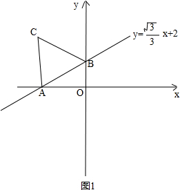 ∵一次函数y=$\frac{\sqrt{3}}{3}$x+2的图象与x轴、y轴分别交于点A、B,