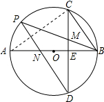 (2)连接AC,根据垂径定理及圆周角定理得到∠P=∠A,∠ACB=90°,则sinA=sinP,然后根据正弦的定义得到=$\frac{BC}{AB}$=$\frac{3}{5}$,得出AB的长即可.