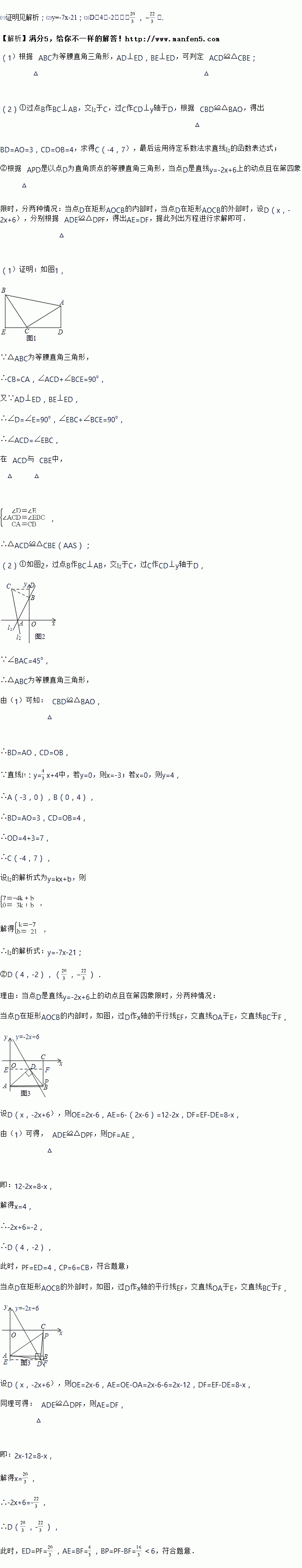 ¢ÚÈçͼ3£¬³¤·½ÐÎABCO£¬OÎª×ø±êԵ㣬µãBµÄ×ø±êΪ£¨8£¬-6£©£¬µãA¡¢C·Ö±ðÔÚ×ø±êÖáÉÏ£¬µãPÊÇÏß¶ÎBCÉϵ͝µã£¬µãDÊÇÖ±Ïßy=-2x+6Éϵ͝µãÇÒÔÚµÚËÄÏóÏÞ£®Èô¡÷APDÊÇÒÔµãDΪֱ½Ç¶¥µãµÄµÈÑüÖ±½ÇÈý½ÇÐΣ¬ÇëÖ±½Óд³öµãDµÄ×ø±ê£®