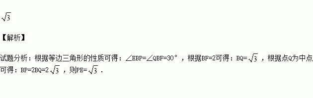 如图,△ABC是等边三角形,P是∠ABC的平分线BD上一点,PE⊥AB于点E,线段BP的垂直平分线交BC于点F,垂足为点Q.若BF=2,则PE的长为 .