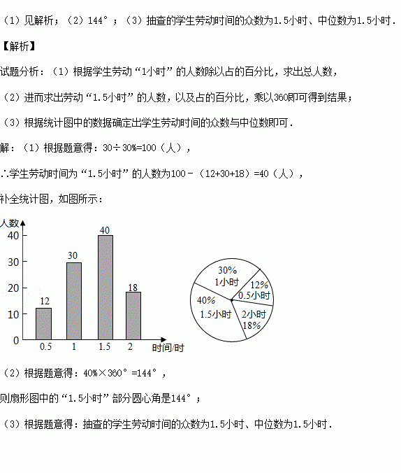(2)扇形图中的“1.5小时”部分圆心角是多少度?
