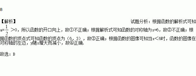 下列说法:①其图象的开口向下;②其图象的对称轴为直线x=-6;③其图象顶点坐标为(6,3);④当x<6时,y随x的增大而减小.则其中说法正确的有