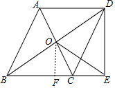 分析 (1)由菱形的性质得OB=OD,则OB=OE=OD,根据等腰三角形的性质得∠OBE=∠OEB,∠OED=∠ODE,然后根据三角形内交和定理计算出∠BED=90°即可;
