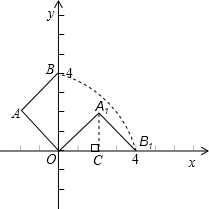 如图,在平面直角坐标系中,等腰Rt△OAB斜边OB在y轴上,且OB=4.