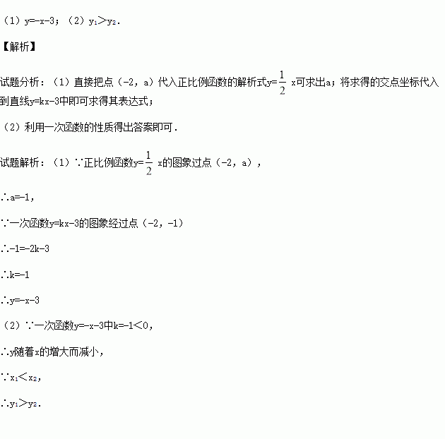 (2)点A(x1,y1),B(x2,y2)都在一次函数图象上,若x1<x2,试比较y1与y2的大小.