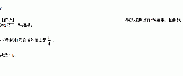 在校田径运动会上,小明和其他三名选手参加100米预赛,赛场共设1,2,3,4四条跑道,选手以随机抽签的方式决定各自的跑道.若小明首先抽签,则小明抽到2号跑道的概率是( )