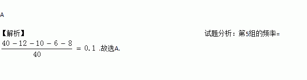 一次数学测试后,某班40名学生的成绩被分为5组,第1~4组的频数分别为12、10、6、8,则第5组的频率是( )