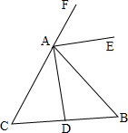 解:如图,AD是∠BAC的平分线,AE是∠BAF的平分线,