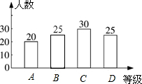 为了解某县2012年初中毕业生数学质量检测成绩等级的分布情况,随机抽取了该县若干名初中毕业生的数学质量检测成绩,按A,B,C,D四个等级进行统计分析,并绘制了如下尚不完整的统计图: