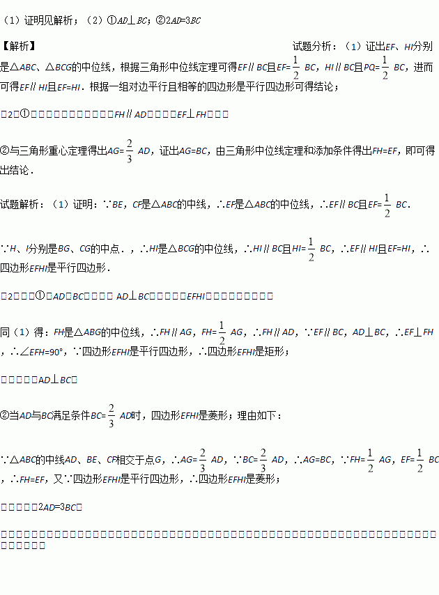 (2)①当AD与BC满足条件 时,四边形EFHI是矩形;