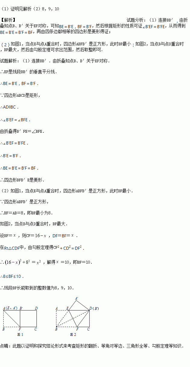 (2)若AB=8,BC=16,求线段BF长能取到的整数值.
