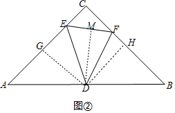 问题2:解:(1)过点D分别向AC、BC、EF作垂线,垂足分别为G、H、M,![]()