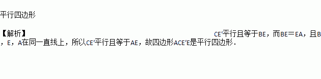 如图,将一张直角三角板纸片ABC沿中位线DE剪开后,在平面上将△BDE绕着CB的中点D逆时针旋转180°,点E到了点E′位置,则四边形ACE′E的形状是_________.