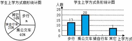 省教育厅决定在全省中小学开展“关注校车、关爱学生”为主题的交通安全教育宣传周活动,某中学为了了解本校学生的上学方式,在全校范围内随机抽查了部分学生,将收集的数据绘制成如下两幅不完整的统计图(如图所示),请根据图中提供的信息,解答下列问题.