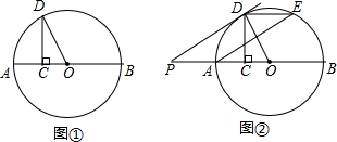 (2)如图②,PD切⊙O于点D,交BA的延长线于点P,过点A作AE∥PD交⊙O于点E,若⊙O的直径为10,求DE的长.
