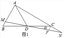 分析 (1)①作CF∥AB交MN于点F,证明△BDM∽△CDF,根据相似三角形的性质和BD=CD,证明BM=CF,根据已知和对应边成比例求出BM与AM的数量关系和$\frac{NC}{NA}$的值;