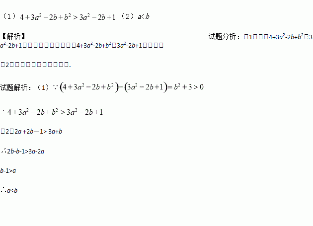 (2)若2a + 2b—1> 3a + b,则a、b的大小关系 (直接写出答案).