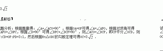 如图,点O为弧AB所在圆的圆心,OA⊥OB,点P在弧AB上,AP的延长线与OB的延长线交于点C,过点C作CD⊥OP于D.若OP=3,PD=1,则OC= .