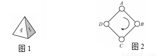 如图1,一枚质地均匀的正四面体骰子,它有四个面并分别标有数字1,2,3,4.如图2,正方形ABCD顶点处各有一个圈.跳圈游戏的规则为:游戏者每掷一次骰子,骰子着地一面上的数字是几,就沿正方形的边顺时针方向连续跳几个边长.如:若从图A起跳,第一次掷得3,就顺时针连续跳3个边长,落到圈D;若第二次掷得2,就从D开始顺时针连续跳2个边长,落到圈B;……设游戏者从圈A起跳.