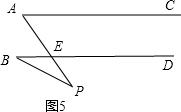 分析:在图1、图2、图3中,过P作MN∥AC,根据平行线的性质可找到三个角之间的关系,在图4、图5中,直接利用平行线的性质和三角形外角的性质可求得三个角之间的关系.