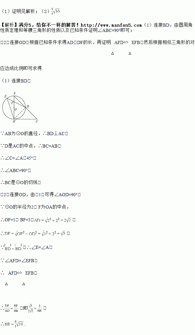 (2)若F为OA的中点,⊙O的半径为2,求BE的长.