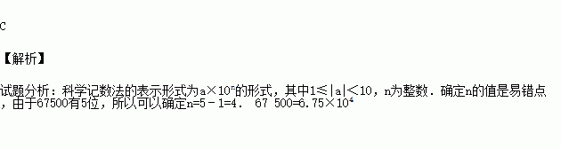 我国第一艘航母“辽宁舰”最大排水量为67500吨,用科学记数法表示这个数字是( )