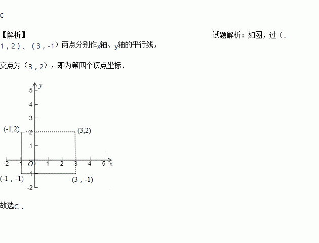 一个长方形在平面直角坐标系中,三个定点坐标分别是(-1,1),(-1,2),(3,-1),则第四个顶点的坐标是( )