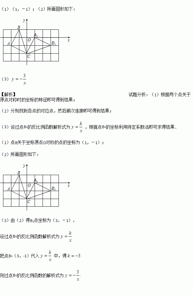 (1)点B关于坐标原点O对称的点的坐标为 ( );