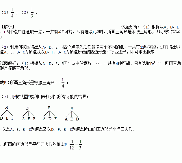 (1)从A、D、E、F四个点中任意取一点,以所取的这一点及点B、C为顶点画三角形,则所画三角形是等腰三角形的概率是 ;