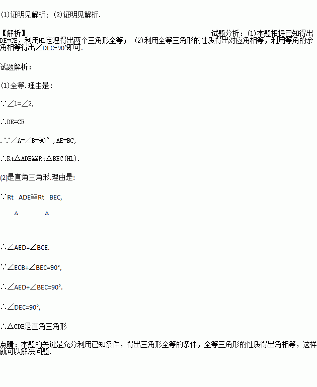(1)求证:Rt△ADE与Rt△BEC全等;