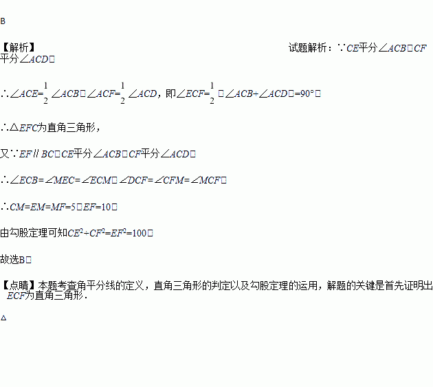 如图,在△ABC中,CE平分∠ACB,CF平分∠ACD,且EF∥BC交AC于M,若CM=5,则