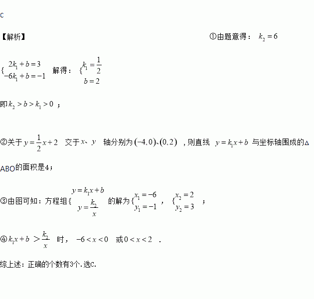 与坐标轴围成的△ABO的面积是4;